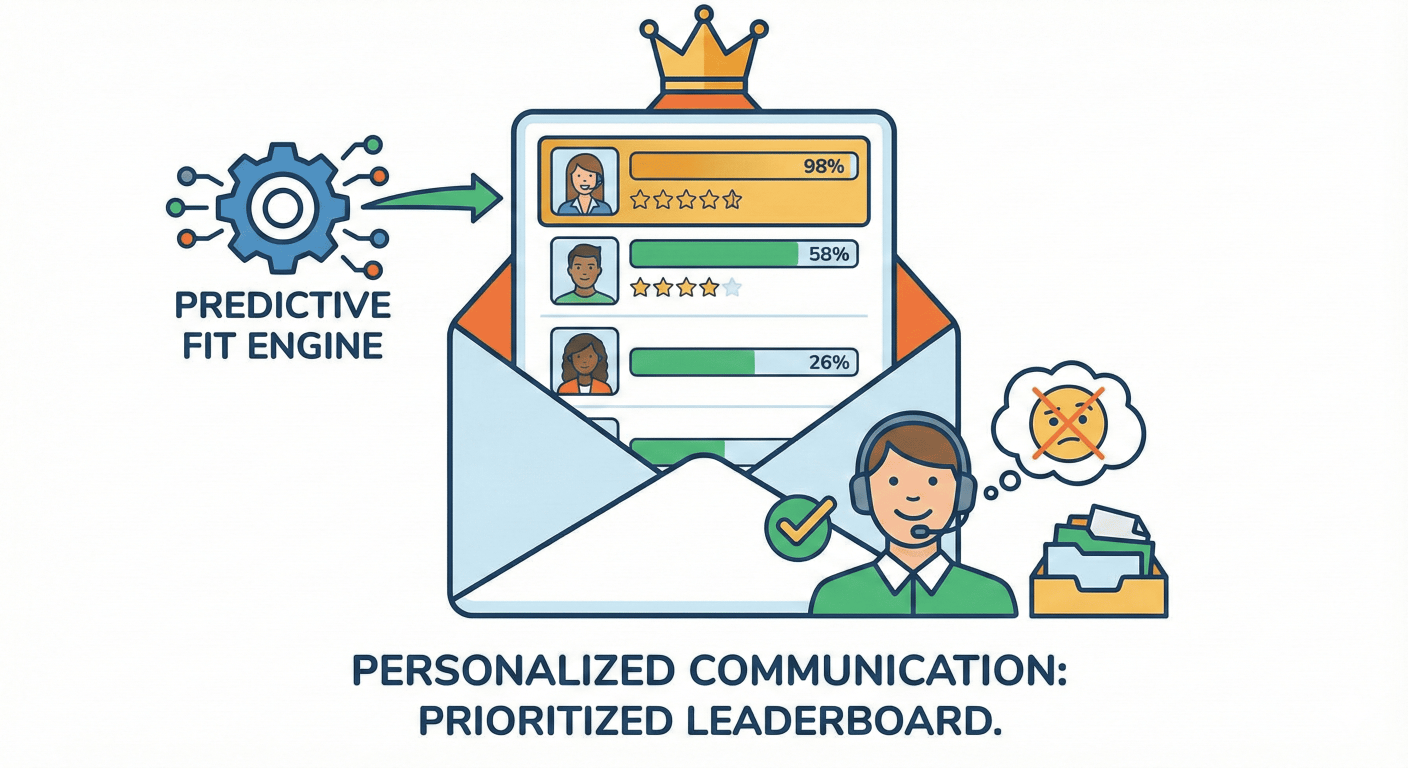 Turn your inbox into a prioritized leaderboard. Our engine ranks every applicant based on predictive fit probability derived from 10,000+ hiring workflows......