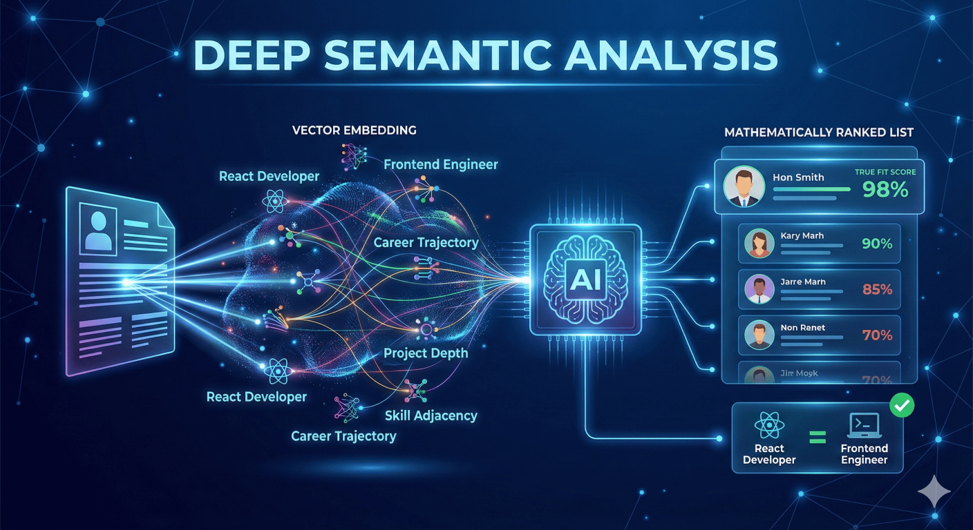 Traditional applicant tracking systems fail because they rely on rigid keyword matching. Faxoc changes this by utilizing advanced vector embeddings to understand the semantic context of every resume. Our system analyzes career trajectory, skill adjacency, and project depth to calculate a true fit score. It recognizes that a "React Developer" might also be a "Frontend Engineer," ensuring you never miss a hidden gem due to terminology mismatches. By evaluating candidates based on actual capability rather than just keywords, we provide a mathematically ranked list that aligns perfectly with your hiring manager's expectations and technical requirements.
