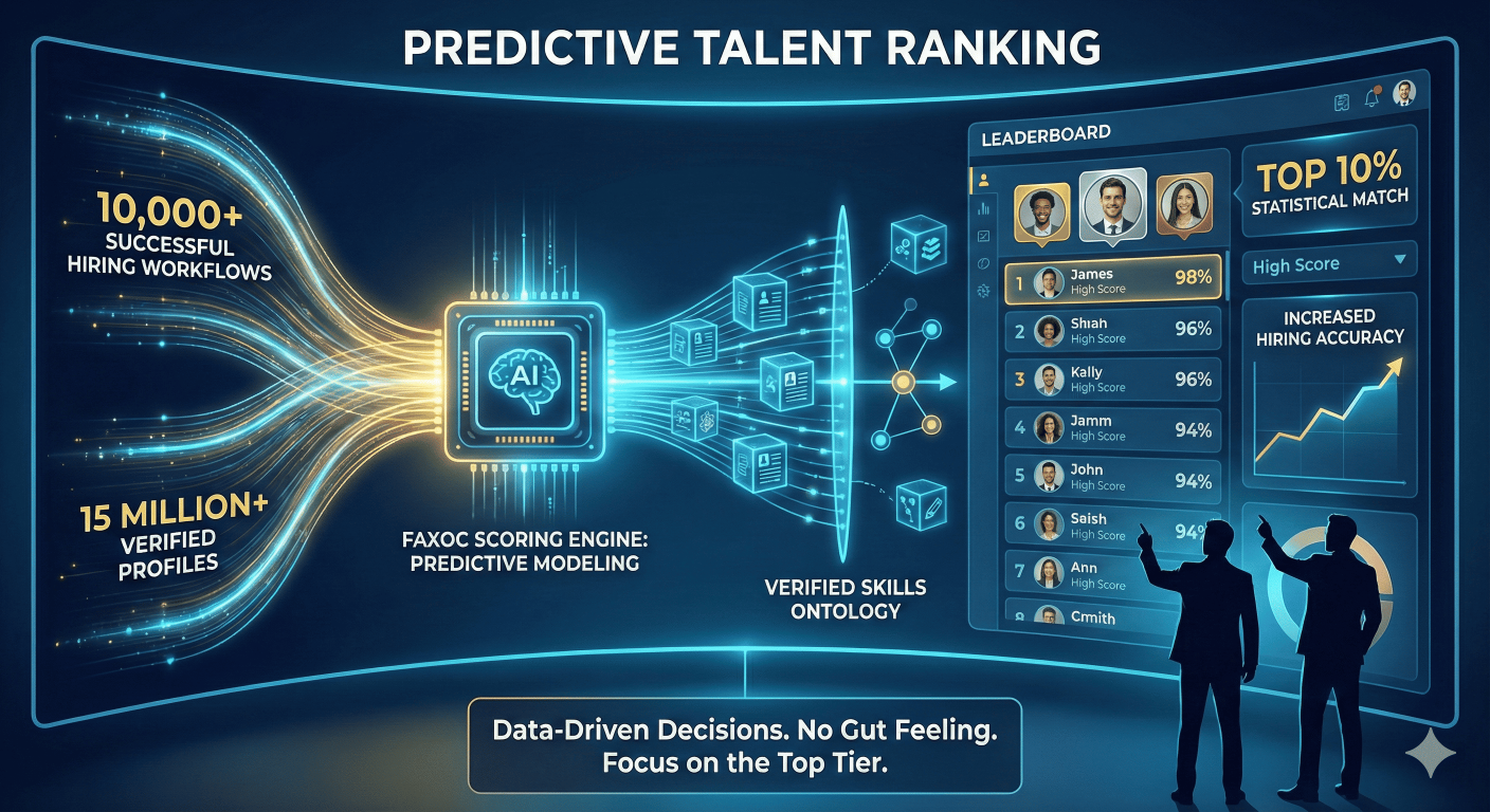 Hiring decisions should be backed by data, not gut feeling. Faxoc’s scoring engine is trained on over 10,000 successful hiring workflows and 15 million verified profiles, giving it the ability to predict candidate success with unprecedented accuracy. We treat every application as a data object, scoring it against a verified ontology of skills and experiences. This results in a dynamic leaderboard where the most relevant talent automatically rises to the top. Instead of wasting hours sifting through unqualified applicants, your team focuses immediately on the top 10% of candidates who statistically match your organizational