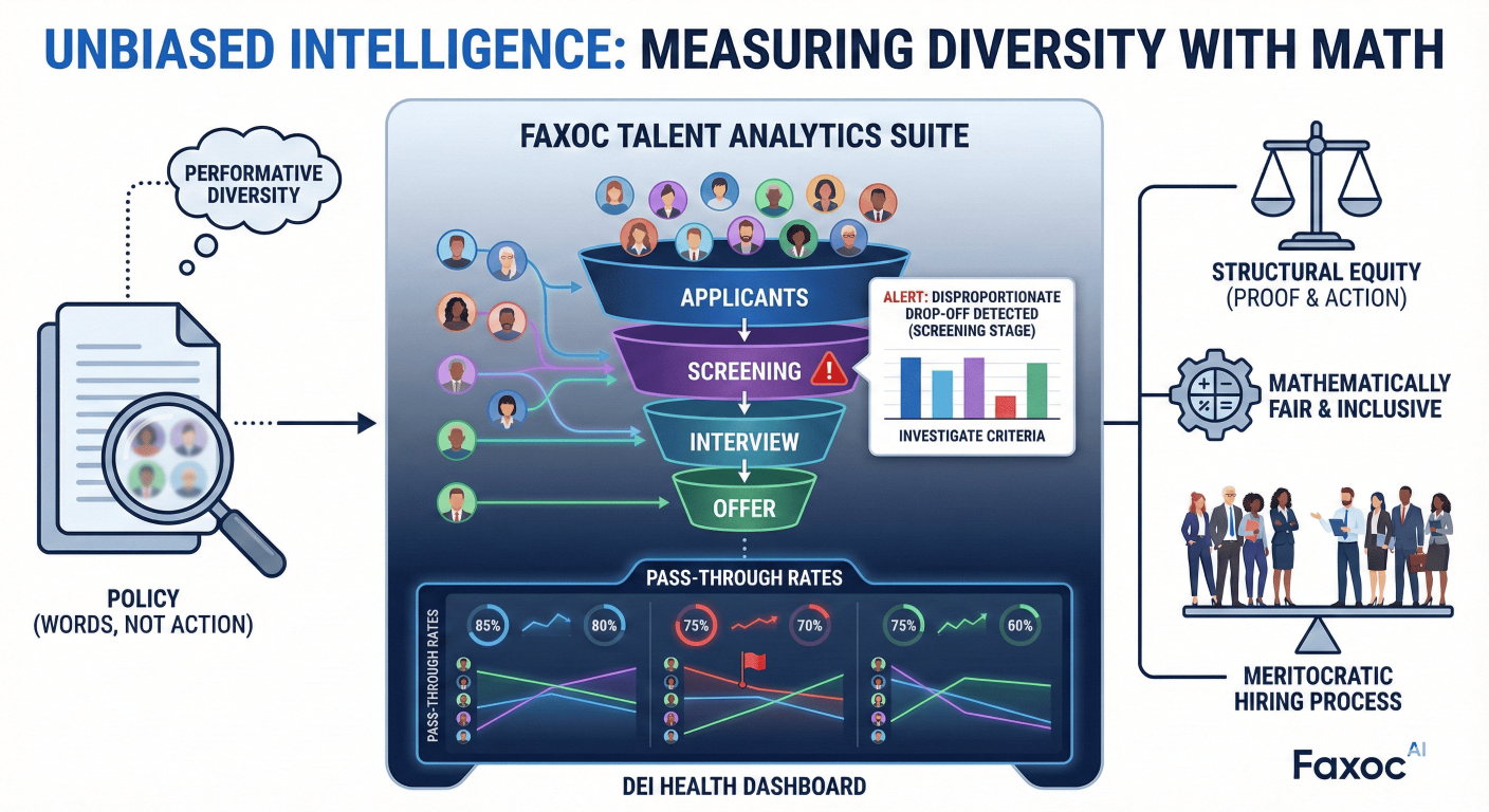 Diversity commitments require more than policy; they require proof. Faxoc’s Talent Analytics suite provides a rigorous, data-driven framework for monitoring DEI health. We track pass-through rates across different demographics at every stage of the funnel to detect unconscious bias. If a specific demographic is disproportionately dropping off at the screening stage, our system alerts you to investigate the criteria. We help you move beyond performative diversity to structural equity. By using data to audit your decisions, you ensure a hiring process that is not only meritocratic but mathematically fair and inclusive for all talent pools.